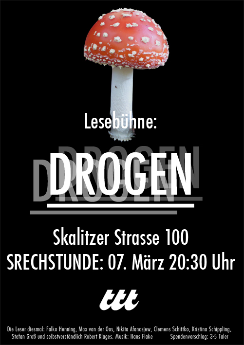 Veröffentlicht am Februar 27, 2015April 7, 2018Lesung in Berlin zum Thema Drogen Eine spannende Lesung und ein vergnüglicher Abend erwarten euch: