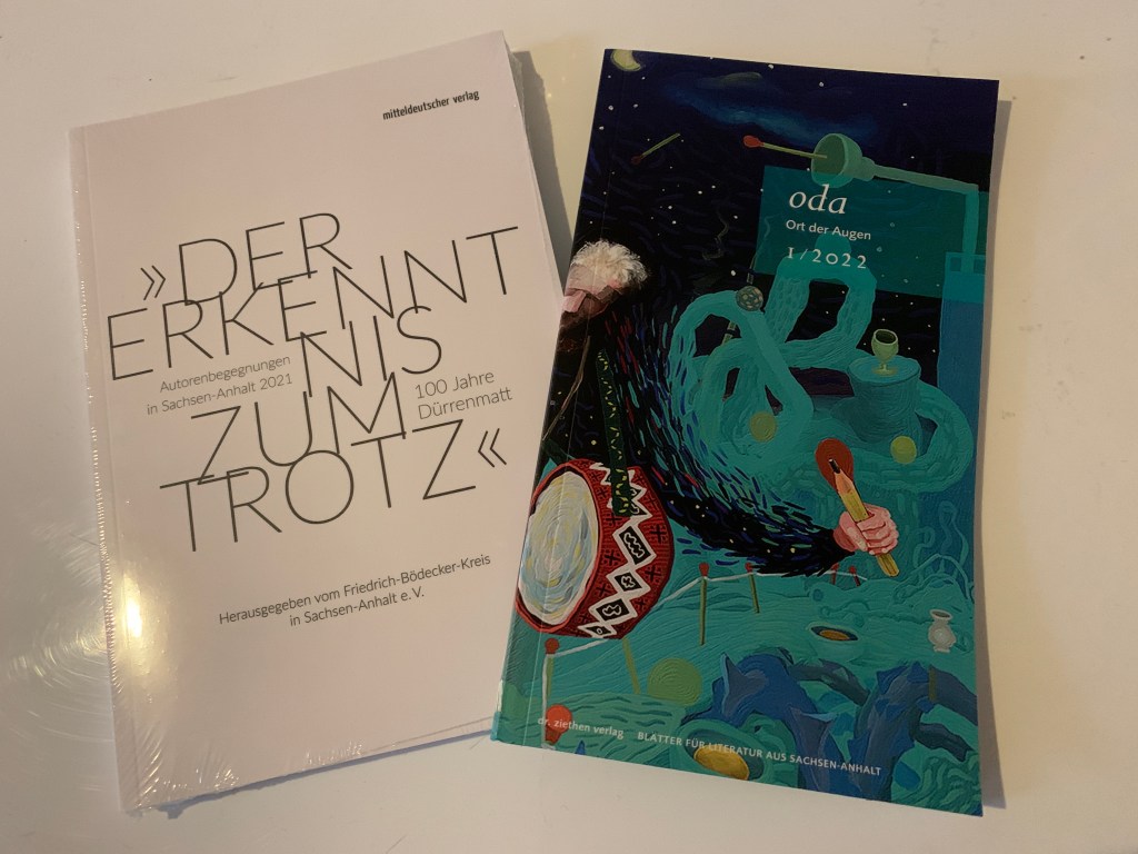 Mein kleines Sketch „Das Sparbuch“ ist in der Anthologie „Der Erkenntnis zum Trotz“ und in der Ort der Augen 1/2022 erschienen. Ich habe mich wie immer sehr gefreut, in Sonneck bei der Autorenbegegnung dabei sein zu dürfen, und danke vor allem André Schinkel und natürlich auch allen Freunden und Bekannten!