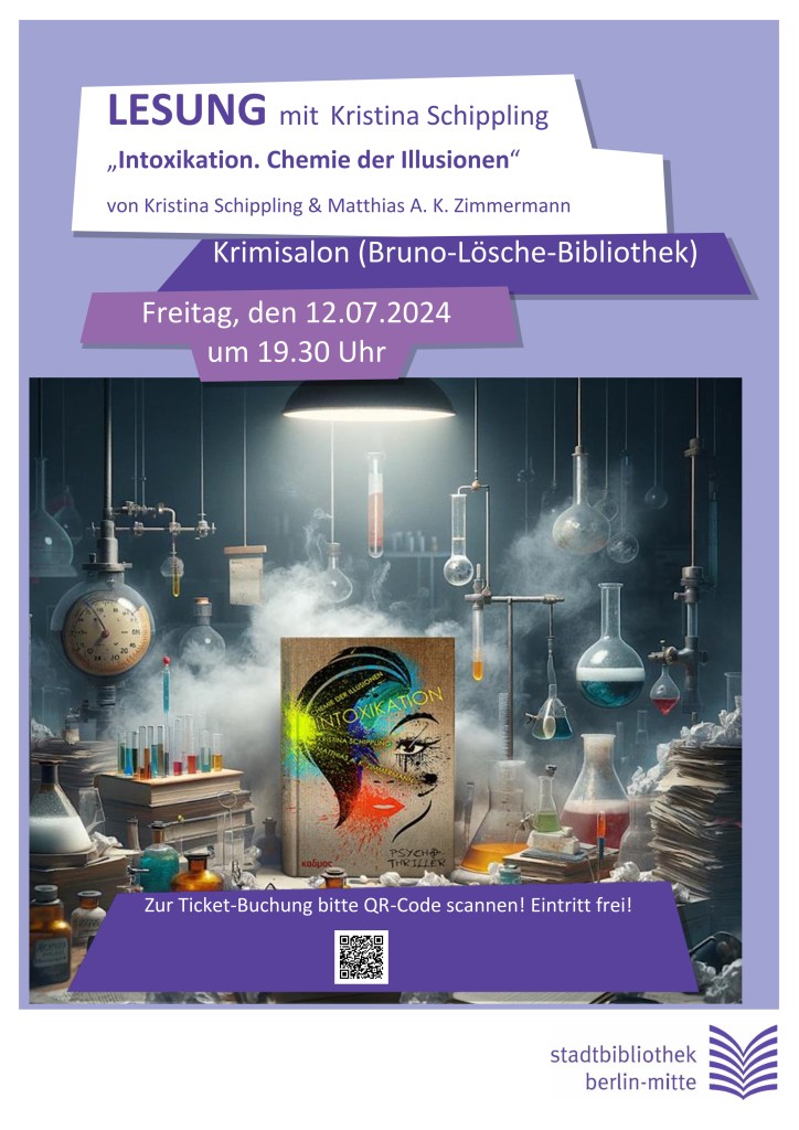 Eine spannende Lesung zum gerade erschienen Thriller „Intoxikation. Chemie der Illusionen“ von dem Autorenduo Kristina Schippling und Matthias A. K. Zimmermann. Die Autorin wird vor Ort sein. Auch wird ein Kurzfilm zum Buch gezeigt. Der Eintritt ist frei.