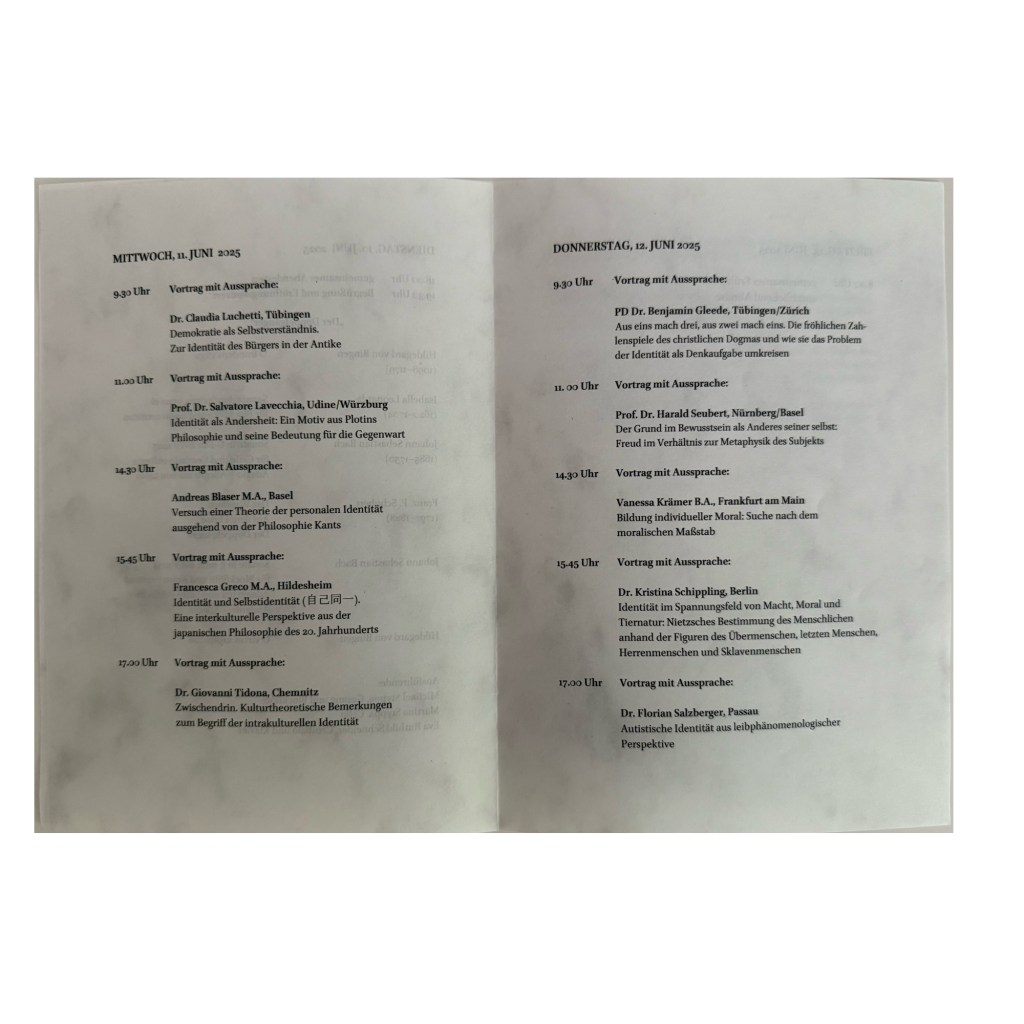 Es war ein spannendes Symposion des Forschungskreises für Metaphysik zum Thema „Philosophie der Identität“ unter der Leitung von Dr. Martina Scherbel und PD Dr. Leonhard Richter im Schloss Schwanberg am Rödelsee. Auch ich habe meinen Beitrag vorgetragen: „Identität im Spannungsfeld von Macht, Moral und Tiernatur: Nietzsches Bestimmung des Menschlichen anhand der Figuren des Übermenschen, letzten Menschen, Herrenmenschen und Sklavenmenschen“. Mein ganz besonderer Dank gilt Dr. Martina Scherbel für die Einladung.