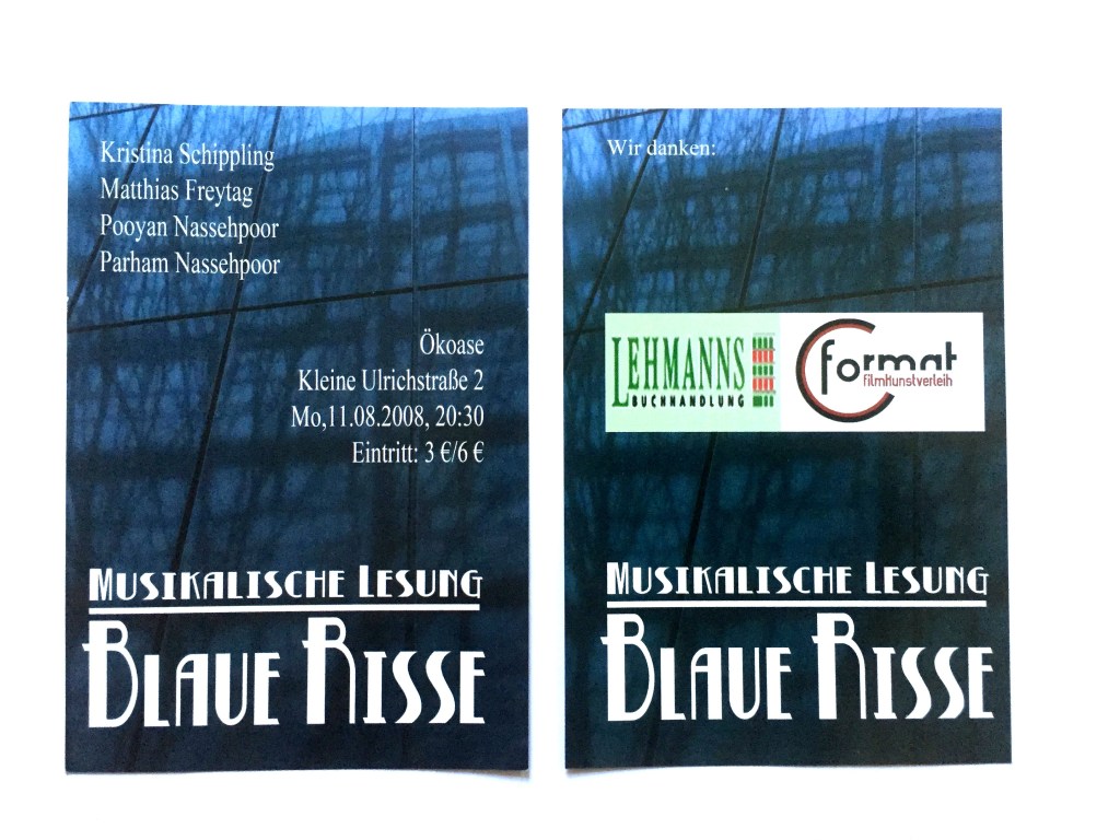 “ ‚Blaue Risse‘ – Abend mit Musik und Lesung. In: SonntagsNachrichten 10.08.2008, S. 3.