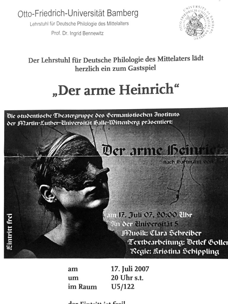 Leibe, Thomas: Der arme Heinrich. In: Blitz! Das Stadtmagazin für Halle. Ausgabe 7/8, 17. Jg., 15.06.2006, S. 10 und Titelbild der Ausgabe.