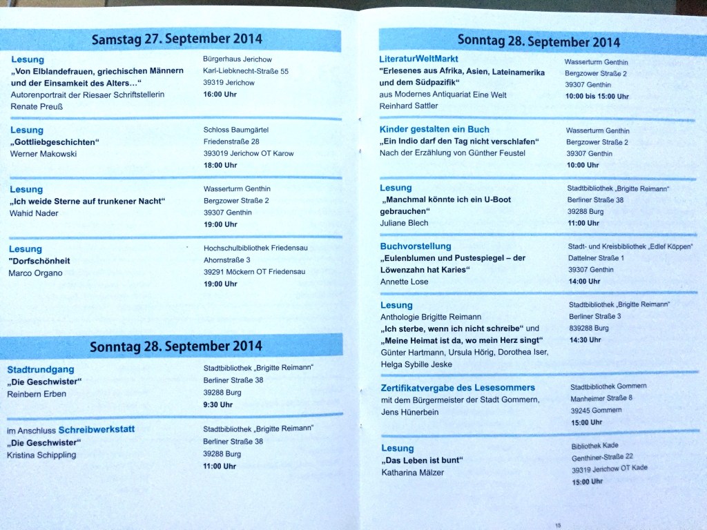 „Leseorte sind dann gemütliche Gaststätten, in denen man bei einem Bier Kristina Schippling, Nele Heyse und Mario Schneider lauschen kann. Sie lesen aus ‚Drei Gesichter‘, ‚Haltewunschtaste‘ bzw. ‚Die Frau des schönen Mannes‘, die alle im Mitteldeutschen Verlag erschienen sind.“